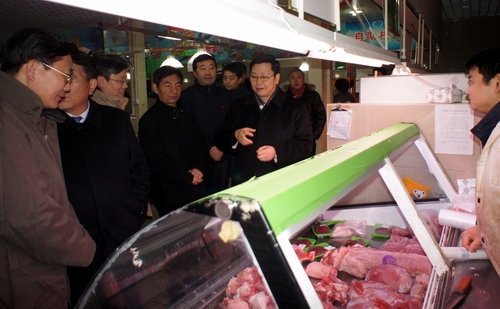 孙建平一行首先来到吉祥菜场,巡视市场,向摊主们了解经营情况,并向大家拜年。孙建平说,“菜篮子”关系到千家万户,尤其是节日里,国营菜场要把公益性放在首位,确保安全、确保供应。