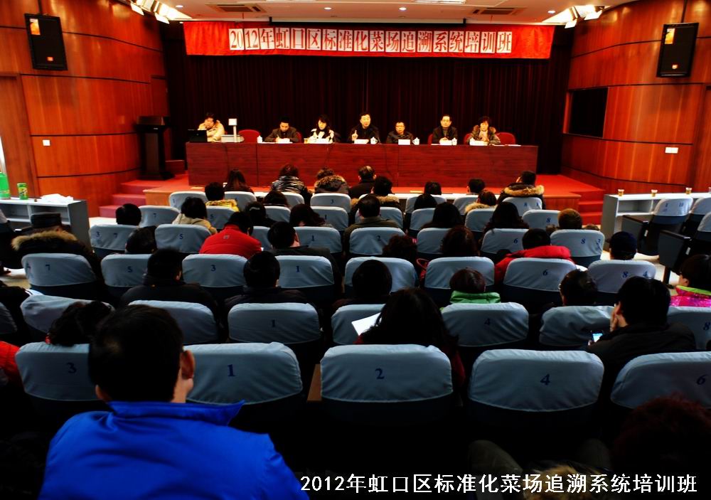 3月7日、8日下午,虹口区商务委员会、虹口区工商分局、虹口区菜场协会联合在虹口区教育学院举办“2012年虹口区标准化菜场追溯系统培训班”,要求全区标准化菜场全面推行食品跟踪与追溯工作并落到实处。培训会议由虹口区菜场协会会长主持。