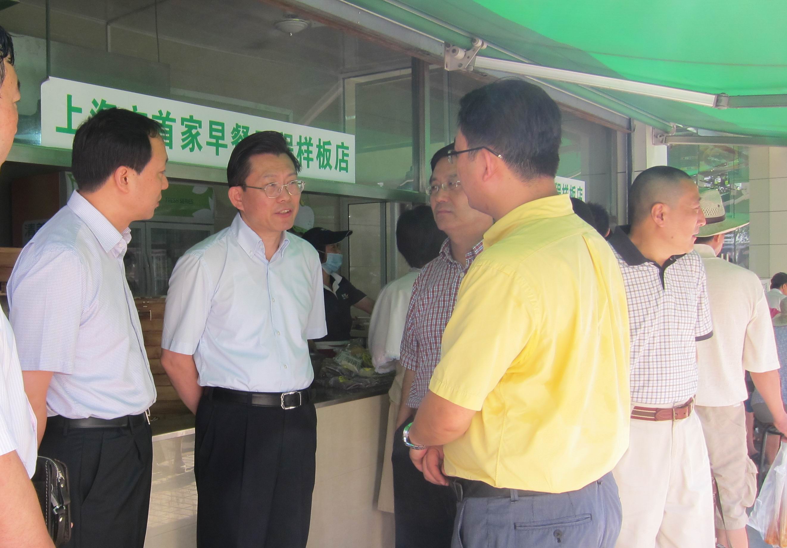 8月17日早上,市商务委顾军副主任一行来到水电路1314号上海首家早餐工程店视察,区委常委副区长张锡平、区商务委一行陪同。