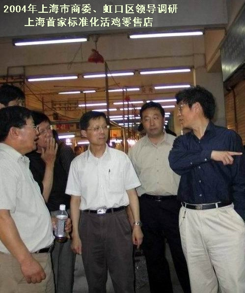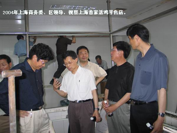 2004年,市商委、虹口区领导调研上海首家标准化活鸡零售店。