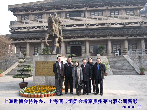 2010年1月9日,由特许办主任胡文君亲自带队,率上海酒类专卖局卢荣华局长、特许办研发招募部朱民部长、特许办销售部辛觉慧部长、上海酒节组委会办公室王小争主任等领导等一行奔赴贵州与茅台酒厂洽谈。他们在出发前做了精心的准备,随带的“上海市商务委关于成立上海世博会特许产品经营办公室的批复”、“世博防伪标签”、“特许产品生产许可协议”等文件一应俱全。航班到达贵州已是下午三点半,他们又马不停蹄地坐了4小时汽车到达位于黔川交界处的茅台镇,特许办的一片诚心深深打动了茅台人的心。当天,茅台酒厂有限责任公司懂事长、总工程师、党委副书记季克良在宾馆与特许办一行会面。
