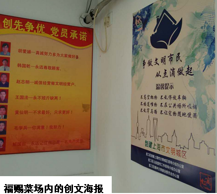 检查中发现各个菜场都能自觉张贴由商联会印制的创文宣传海报,宣传效果良好,商品划行规市、摆放整齐,追溯系统运行良好。但在检查中,各菜场也暴露出一些共性的问题:如个别菜场有自行车进入,地上有垃圾。江湾菜场门口熟食店工作人员没有做到“三白”,电瓶车停放不整齐等。
