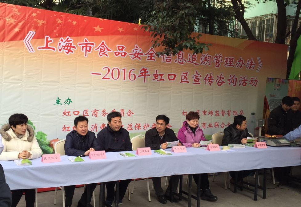 近日,由市商务委追溯办牵头,虹口区商务委、虹口区市场监管局、虹口区消保委、虹口区商联会共同主办的《上海市食品安全信息追溯管理办法》2016年虹口区咨询宣传活动,于1月16日在凉城社区隆重举行。六合勤强、清美食品、金山强丰果蔬、菜博士豆芽、东滩大米、东方港湾牛羊肉、中信信息公司、三角地等10余家品牌企业参加,近万人次参与本次活动。本次活动从保障民生和普及群众的角度出发,进一步提高食品安全追溯的知晓率,切实将《上海市食品安全信息追溯管理办法》落到实处,确保市民买得放心,吃得安心。