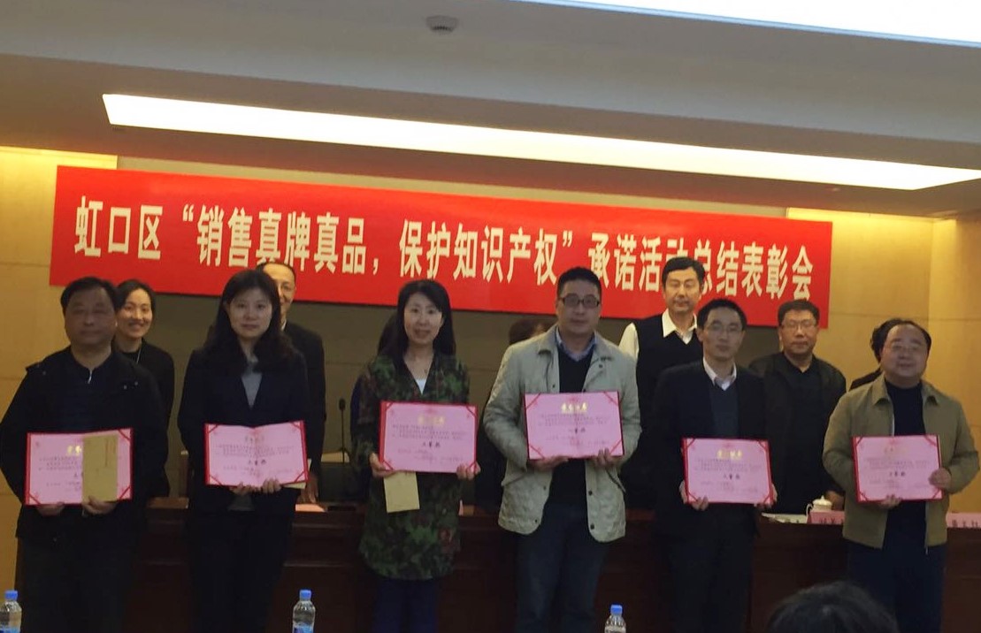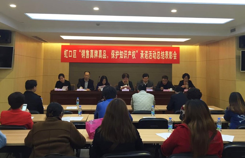 为深入有效开展“销售真牌真品,保护知识产权”承诺活动,营造尊重知识、诚信守法的知识产权文化氛围。4月6日下午,虹口区知识产权局联合区市场监督管理局、区商务委和区商业联合会组织召开了2015年虹口区“销售真牌真品,保护知识产权”工作总结表彰会。市商业联合会刘明荣副会长、市知识产权局法规处陶蓉处长出席了会议。