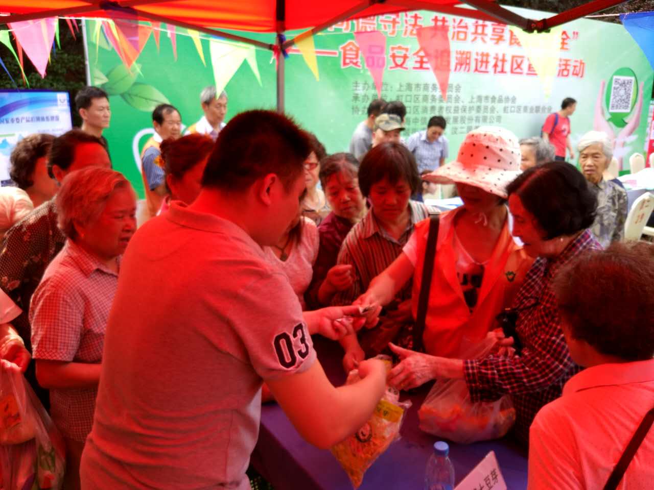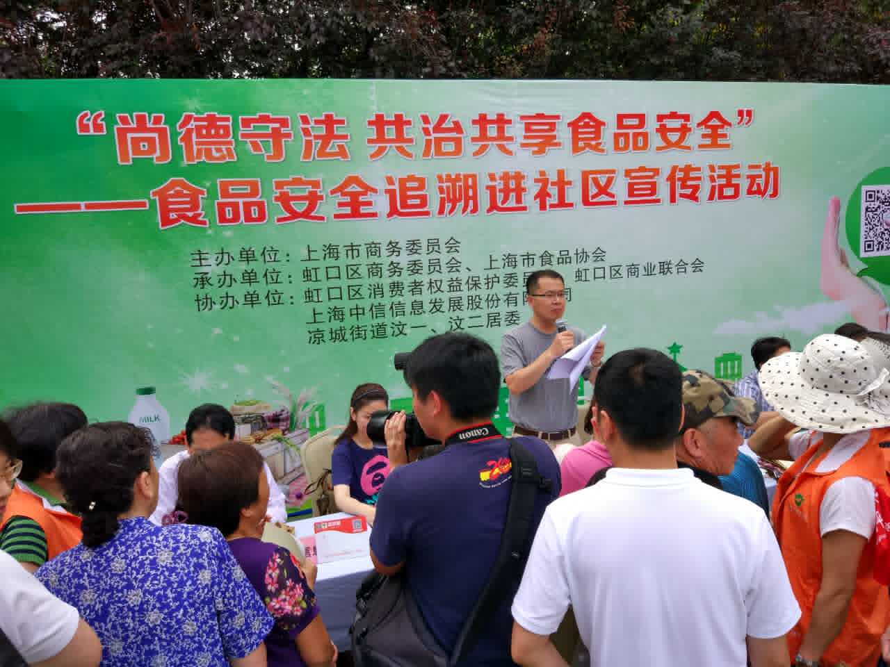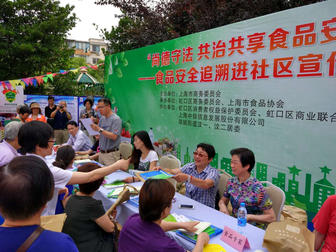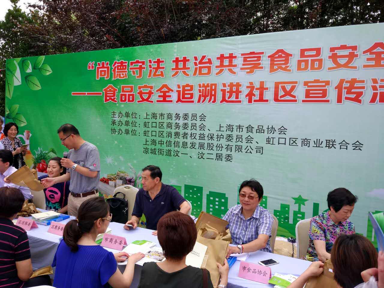 由我会等承办的食品追溯进社区活动,经过近二个月的筹备,6月18日市商务委、市食品协会、虹口商务委、消保委、商联会、中信信息等在虹口凉城汶二、汶一居委举办《食品安全追溯进社区宣传活动》,现场专家讲解、追溯演示以及近万份宣传品的发放,使周边万余人次的居民,受到了一次生动活泼的教育,由于该活动贴近生活、接地气,受到了欢迎,很多市民表示,希望在社区多看到些喜闻乐见落地宣讲活动。