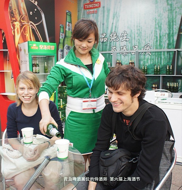 青岛啤酒展位的侍酒师 第六届上海酒节