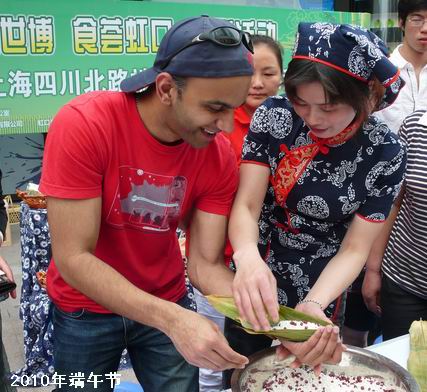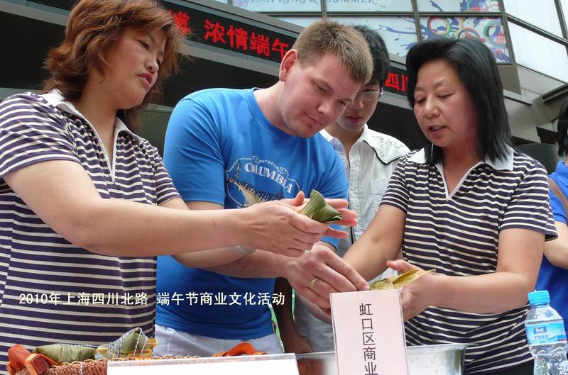 2010年四川北路端午节 中外宾客包粽忙